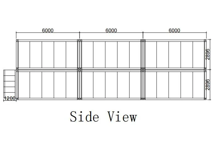 | Size | L3028*W2438*H2896mm | L6058*W2438*H2896mm | L12100*W2438*H2896mm |